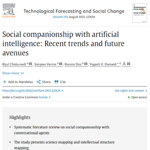 The social companionship (SC) feature in conversational agents (CAs) enables the emotional bond and consumer relationships. The heightened interest in SC with CAs led to exponential growth in publications scattered across disciplines with fragmented findings, thus limiting holistic understanding of the domain and warrants a macroscopic view of the domain to guide future research directions.
